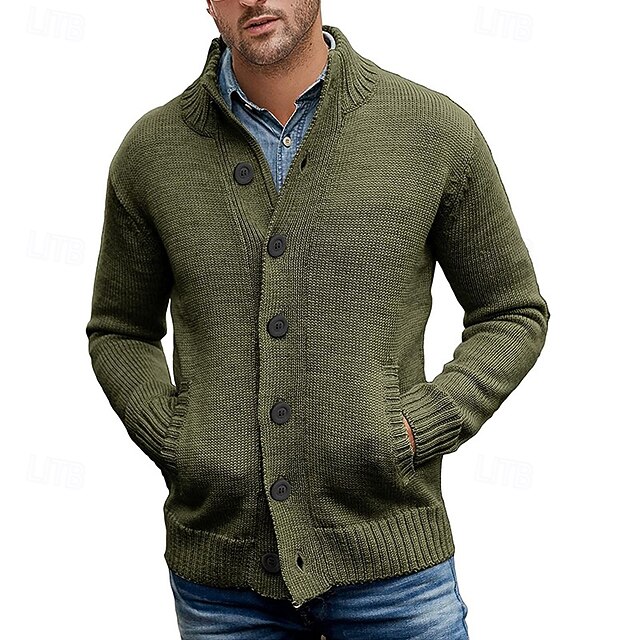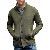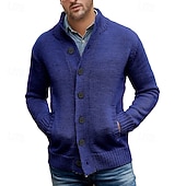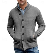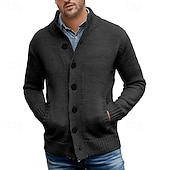 More information about Men's Cardigan Sweater Cropped Sweater Knit Sweater Ribbed Knit Regular Tops Button Up Pocket Plain Stand Collar Fashion Classic Vacation Daily Wear Clothing Apparel Fall Winter Black Dark Blue M L
