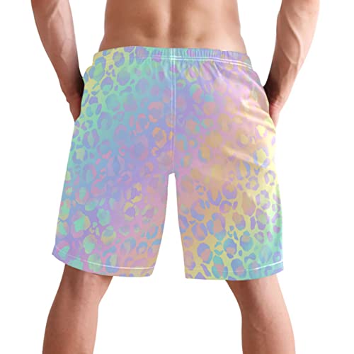 visesunny Bright Rainbow Leopard Print Men's Swim Trunks Quick Dry Bathing Suits Beach Swim Shorts 7