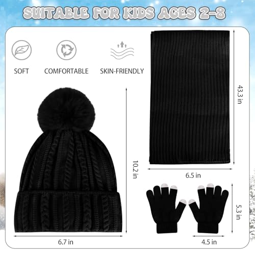 Kids Winter Hat Gloves Scarf Set Winter Knit Beanie Cap with Pompom Scarf Gloves Warm Set for Toddlers Boys Girls Ages 2-8 3