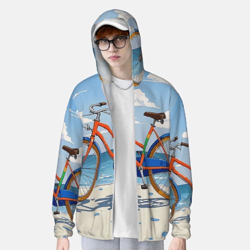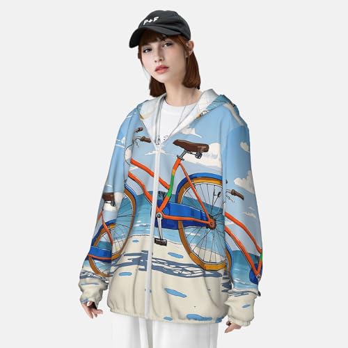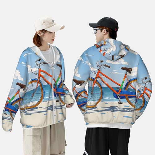 Sun Protection Hoodie Shirt Colorful bicycle UPF 50+ Long Sleeve Outdoor Rash Guard for Men Women