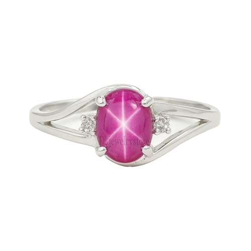 HOT ! Sterling Silver Star Sapphire Ring, Oval Lab Created Gemstone, Promise Ring with Cz Diamonds, Blue And Pink Star Sapphire Ring