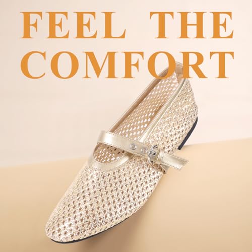 Mesh Ballet Flats Mary Jane Flats Round Toe Slip On Shoes Casual Breathable Ballerina Flats Gold 6