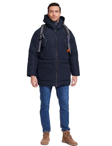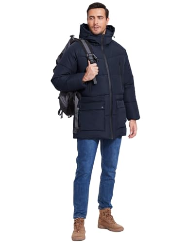 Mens Winter Coats Water-Repellent Windproof Thicken Parkas Long Hooded Padded Puffer Jacket with Pockets 5