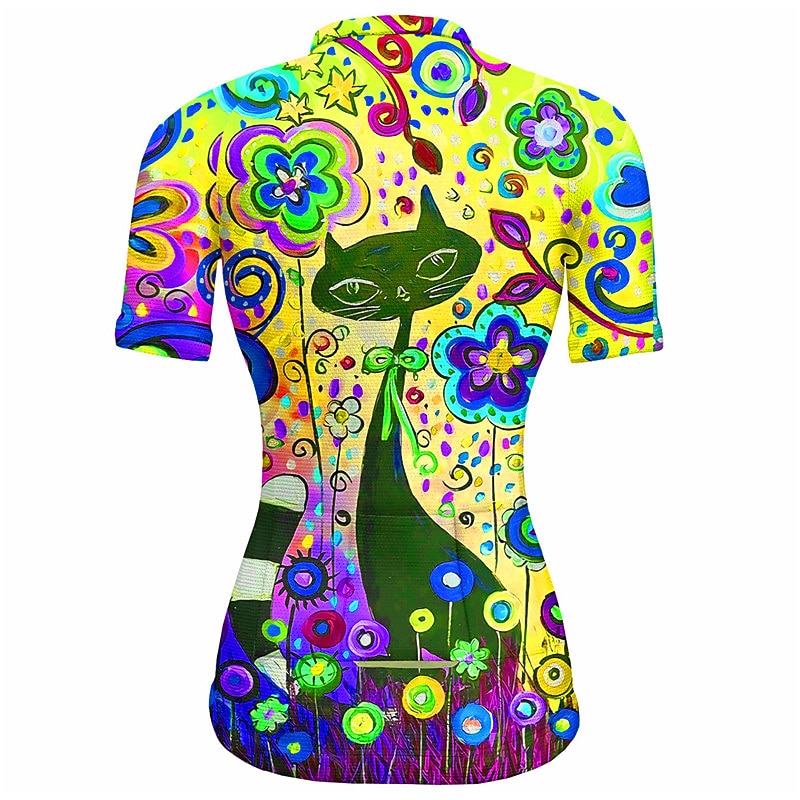 Women's Cycling Jersey Graphic Short Sleeve Bike Jersey Top with 3 Rear Pockets Mountain Bike MTB Road Bike Cycling Quick Dry Reflective Strips Back Pocket Moisture Wicking Sports Yellow Blue Orange 10