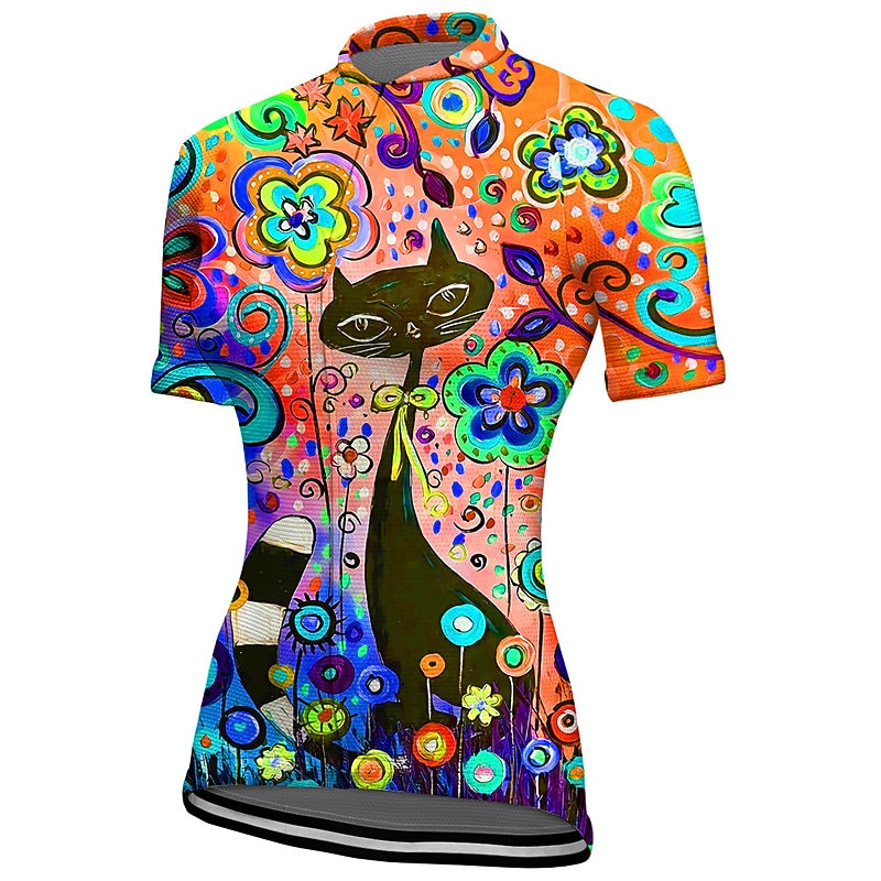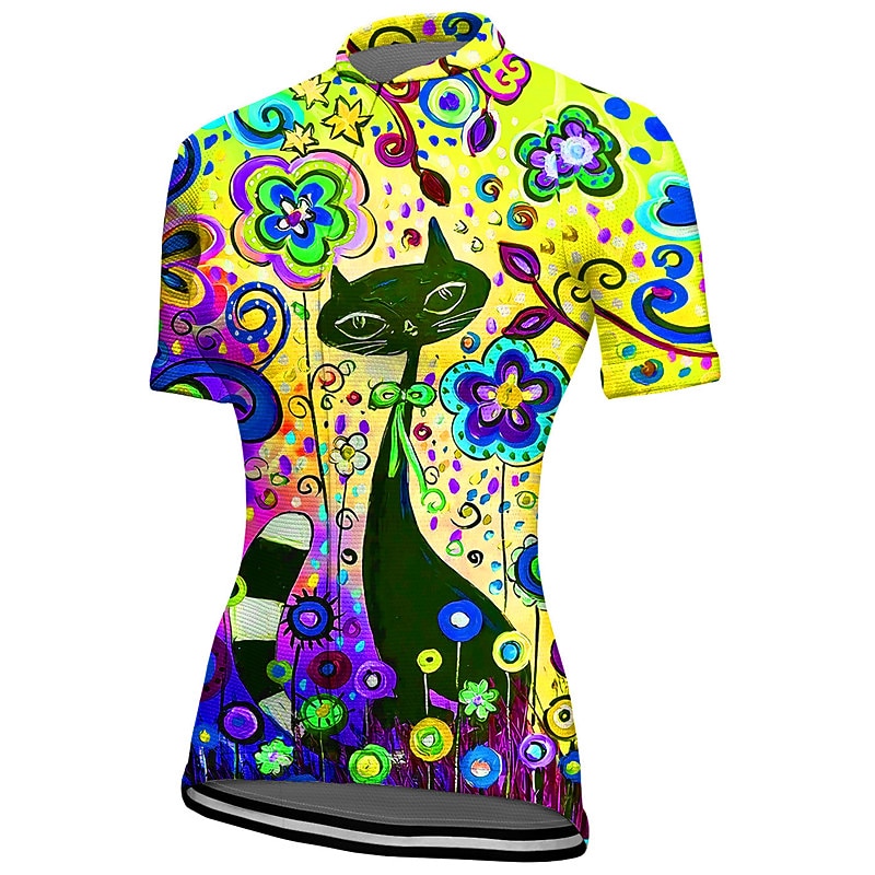 Women's Cycling Jersey Graphic Short Sleeve Bike Jersey Top with 3 Rear Pockets Mountain Bike MTB Road Bike Cycling Quick Dry Reflective Strips Back Pocket Moisture Wicking Sports Yellow Blue Orange 19