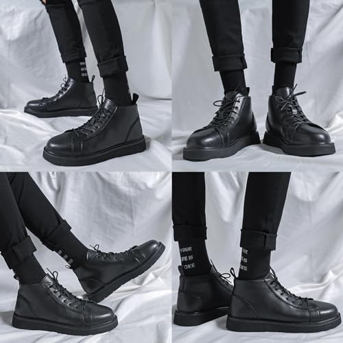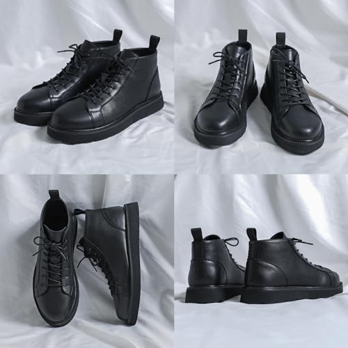 Zeberfi Men's Platform Black Leather Fleece-Lined Chukka Boots Fashion Winter Warm Lace Up Round Toe High Top Casual Sneakers Comfort Waterproof Non-slip Formal Business Work Ankle Boots 6