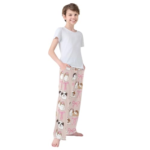 Shih Tzu and Bow Boys Pants Boys Athletic Pants Long Pant for Boywith Pockets Wide-Leg Size 6-14Y 3