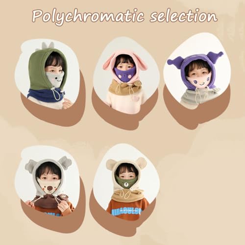 Balaclava Children's Cat Ears Hood, Winter Windproof Kids Face Mask, Cute Boys Girls One-Piece Plush Scarf Hat-E 4