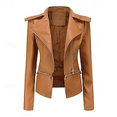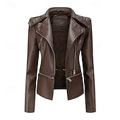 $53.99 - Women's Faux Leather Jacket Comfortable Patchwork Zipper Casual Solid Color Vacation Street Casual Daily Wear Regular Turndown Regular Fit Long Sleeve Outerwear Black Wine Camel Spring Fall 2025. Shop for cheap Faux Leather Jackets online? Buy at lightinthebox.com on sale today!