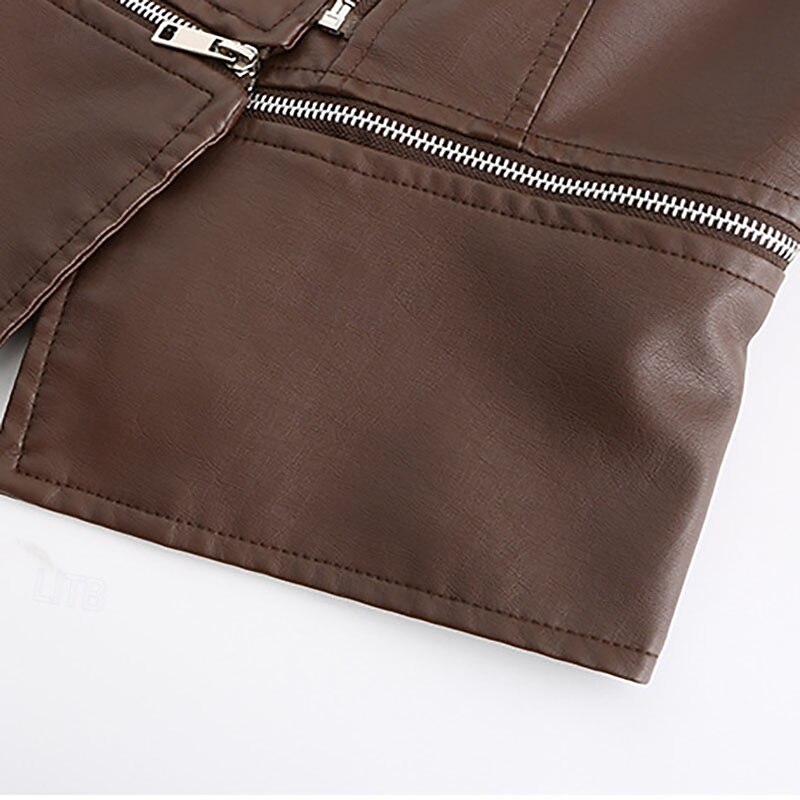 More information about Women's Faux Leather Jacket Comfortable Patchwork Zipper Casual Solid Color Vacation Street Casual Daily Wear Regular Turndown Regular Fit Long Sleeve Outerwear Black Wine Camel Spring Fall