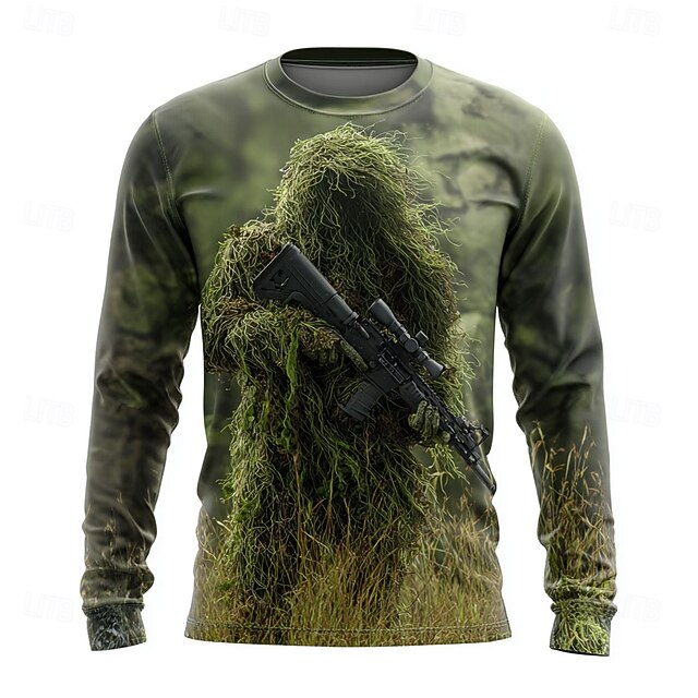 Men's Camo T Shirt Long Sleeve T shirt 3D Print Crew Neck Shirt Fashion Outdoor Street Sports Outdoor Hunting Green 1# Green 2# Summer Spring Clothing Apparel S M L XL XXL XXXL 6