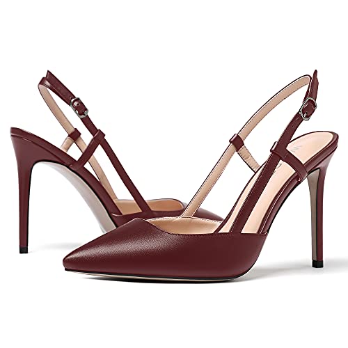 • ❤ The 4 inch super fine slingback high heel shoes, with top quality manmade leather mateiral, pointed toe design and smooth lines gives you a sexy and elegant temperament.