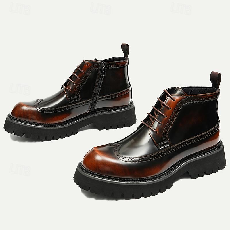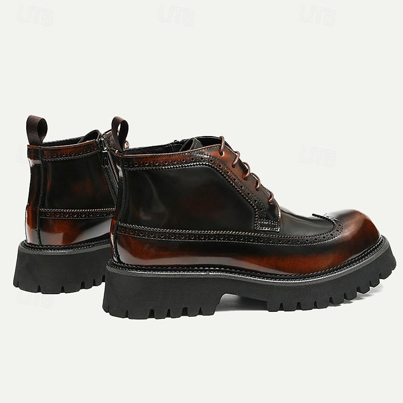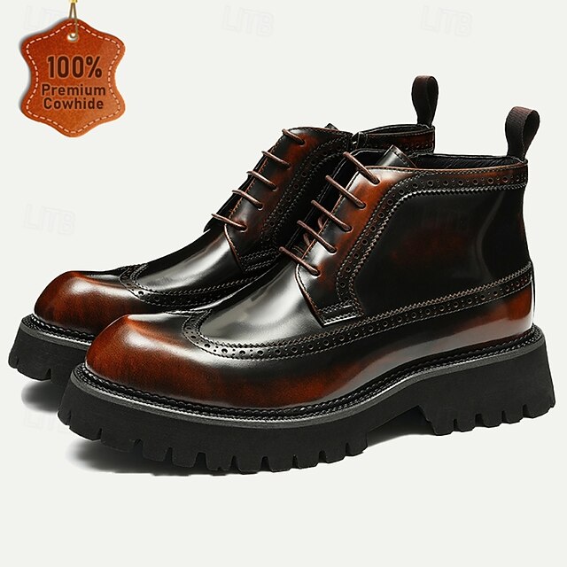 Men's Premium Leather Brogue Combat Boots - 100% Cowhide Lace-Up Ankle Boots with Chunky Sole for Stylish and Rugged Wear 1