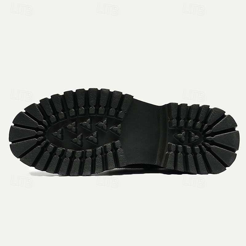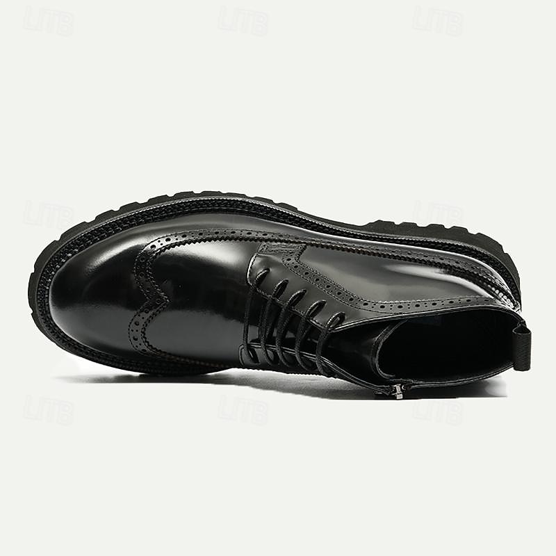 Men's Premium Leather Brogue Combat Boots - 100% Cowhide Lace-Up Ankle Boots with Chunky Sole for Stylish and Rugged Wear 6