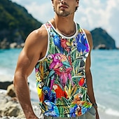More information about Men's Graphic Tropical Parrot Tank Top Vest Top Sleeveless T Shirt for Men Sleeveless T shirt 3D Print Crew Neck Shirt Vacation Tropical Fashion Sports Outdoor Casual Gym Green Summer Spring Clothing