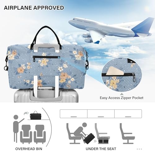 Large Travel Duffel Bag Sports Tote Gym Bag Overnight Weekender Bags Blue Background Floral Carry On Luggage with Toiletry Bags 7