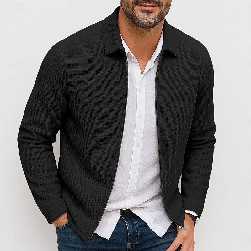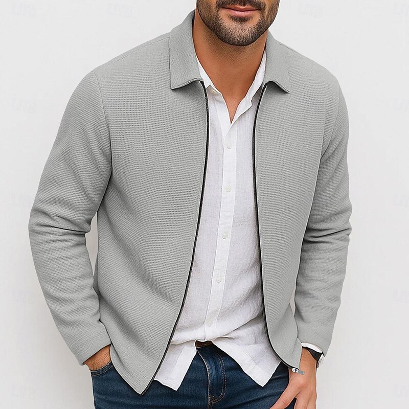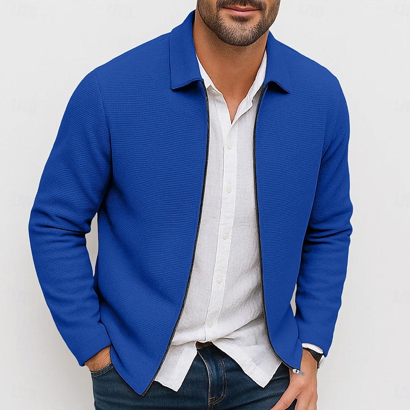 More information about Men's Waffle Jacket Jacket Casual Jacket Outdoor Vacation Warm Plain Spring Fall Winter Plain Fashion Streetwear Lapel Regular Black White Royal Blue Khaki Grey Jacket