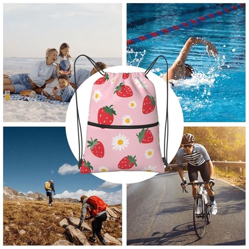 Famame Strawberry Flowers Drawstring Backpack String Bag Sackpack For Gym Shopping Beach Sport Yoga 5