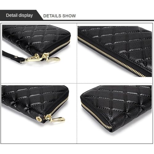 Quilted Zipper Around Wristlet Purse Credit Card Slots Mobile Phone Genuine Leather Wallet for Women 5