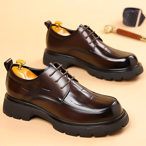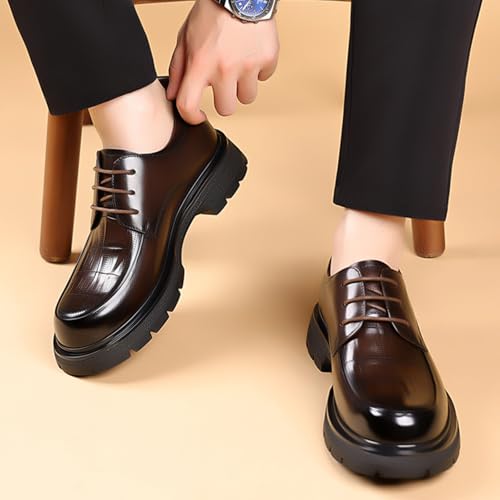 Men's Genuine Leather Round Toe Platform Chunky Heel Brogue Oxfords Retro Classic Hand Stitched Non-Slip Lug Sole Lace Up Block Heel Business Dress Oxfords for Work Office Wedding 6