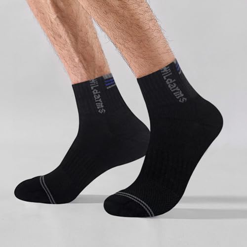 Wildarms Men's 6-Pack Running Socks - Cotton Ankle Socks with Arch Support, Cushion & Double Cuff for Sports, Hiking, Gym 6