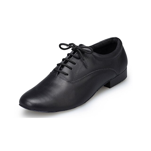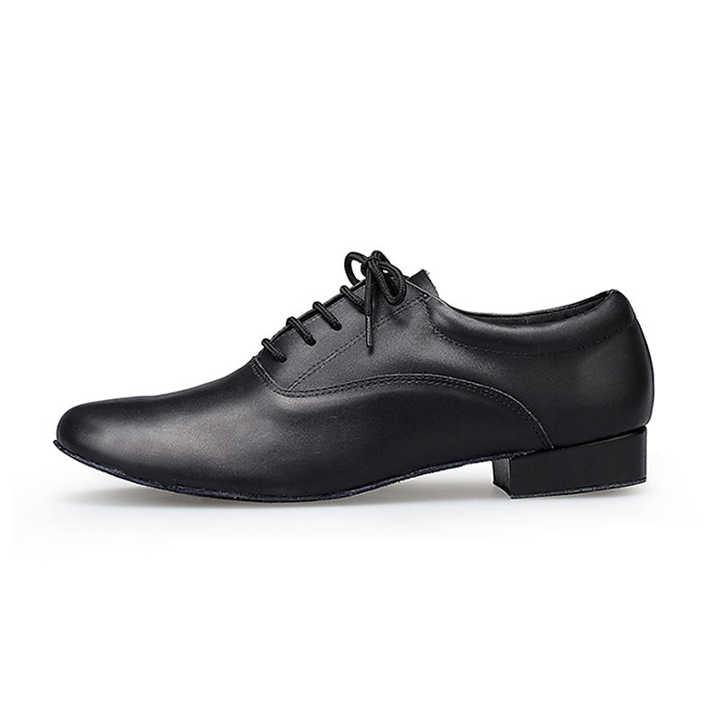 Men's Black Leather Ballroom Dance Shoes – Lace-Up Latin Tango Performance Shoes with Suede Sole for Professionals and Beginners