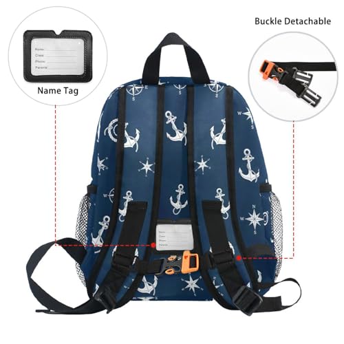 Toddler Backpack for Girls Boys, White Anchors Navy Blue Kids Backpacks with Name Tag Mini, 3-8 Years 3