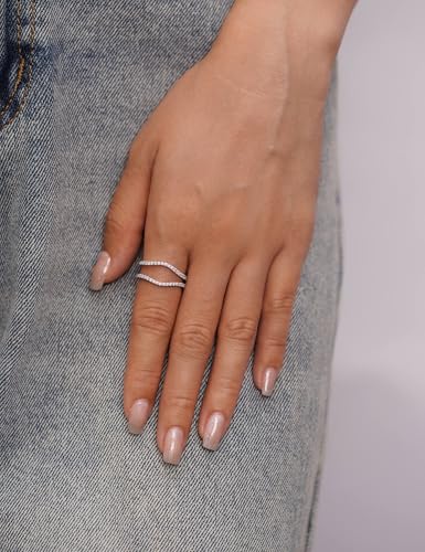 YODEWA Curved Moissanite Wedding Bands for Women, Thin Ring Enhancers and Wraps, Stackable Half Eternity Band, Fake Diamond Sterling Silver Ring 1.3mm 1
