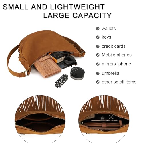GLITZALL Boho Fringe Purse Small Crossbody Hobo Bags for Women Vegan Suede Western Country Purse 6