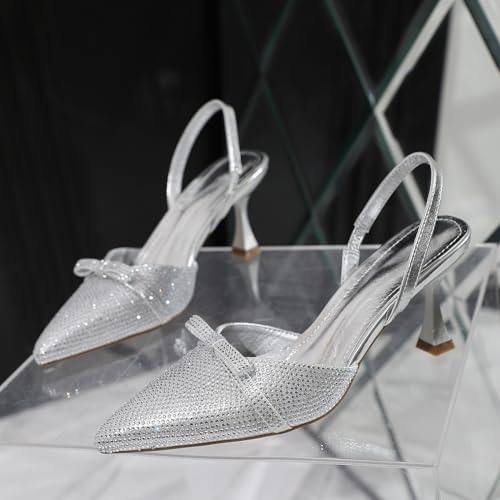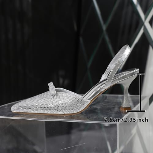 MRKEWUNEY Fashion Buckle Slingback Kitten Heels for Women Buckle Strap Work Pumps 6