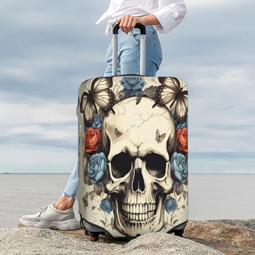 Travel Luggage Cover Elastic Suitcase Protector Washable Baggage Covers Fit For 22-24 Inch Luggage Rose Flower Skull Butterfly Suitcase Cover M 2