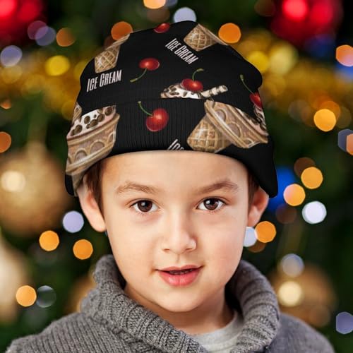 Ice Cream and Cherries Pattern Kids Beanie Hat for for Girls Boys Children Cap Winter Knitted Chemo Cancer Headwear Accessories Gifts Decoration 7