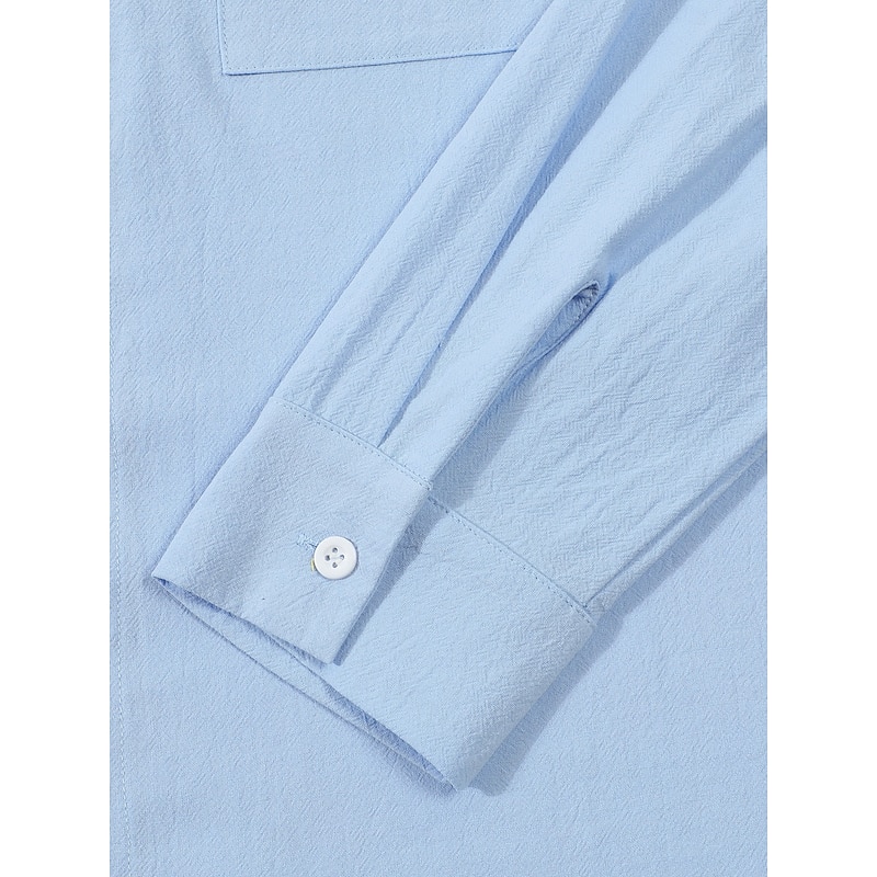 Men's Shirt Linen Shirt Summer Shirt Beach Wear Button Up Shirt Plain Vacation Daily Black White Yellow Navy Blue Long Sleeve Band Collar Summer Spring & Summer Clothing Apparel Pocket 6