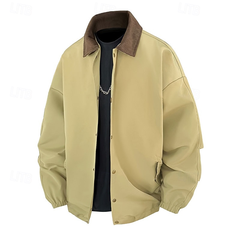 Men's Jacket Casual Jacket Outdoor Vacation Warm Zipper Pocket Fall Winter Plain Fashion Streetwear Standing Collar Regular Light Yellow Khaki Army Green Dark Blue Coffee Jacket 1