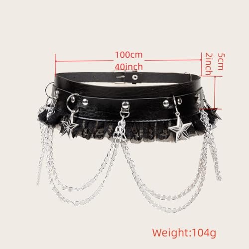 • Design: This women's punk belt is made of faux leather. The multi-layer spliced belt, combined with lace edges, chains, rivets and star hardware, creates a versatile and fashionable style. The buckle is a pin buckle, which is convenient to wear.