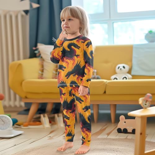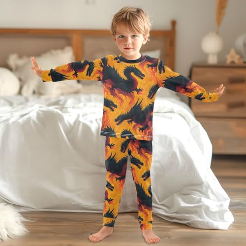 Pajama Sets Long Sleeve Dragons Amidst Fiery Flames Soft Comfy Sleepwear 2 Piece PJS 3-8T 2