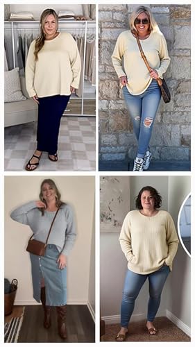HOT ! Long Sleeve Shirt for Womens Plus Size Tunic Top Casual Textured Crewneck Fall Loose Tops
