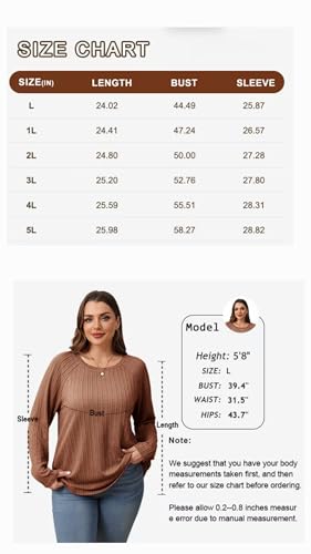 More information about Long Sleeve Shirt for Womens Plus Size Tunic Top Casual Textured Crewneck Fall Loose Tops