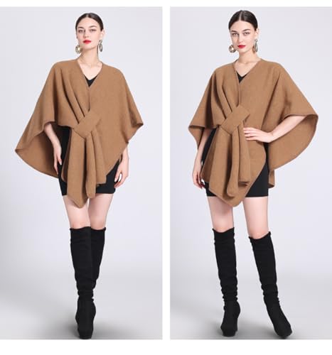 More information about Huralona Women's Open/Cross Front Cardigan Shawls Wrap Solid Color Poncho Ruana Cape Plus Size Knit Wraps for Fall Winter