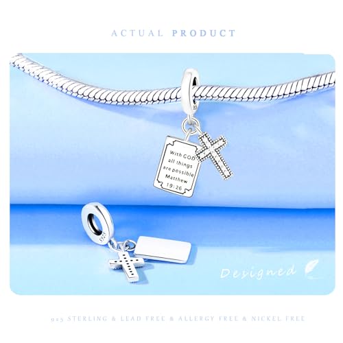 925 Sterling Silver Beads for Bracelets & Necklaces, Bible Cross Book Charms, Birthday Graduation Jewelry Gifts for Women Men Lover 2