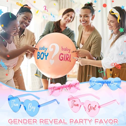 Origin: ImportedGender Reveal Glasses: Cute pink blue heart shpaed sunglasses, you'll get 40 pcs team boy/team girl rimless glasses. Enough quantity to match your baby shower party supplies, suitable for holiday party decorationSpecial Gender Design of Heart Glasses: Featured with the heart shaped glasses, with respectable material and cute glasses design, these fun sunglasses can be applied as gender reveal party photo booth props, adding a cool and fun touch to the partyOne Size Fits Most: The package comes with total 40 pairs of colored sunglasses, including 20 pairs blue team boy sunglasses and 20 pairs pink team girl sunglasses. Each of is about 5.6*2.3*5.7 inches, which are suitable for most people to wear, whether children or adults, and lightweight and portable to carryDurable and Sturdy: This heart glasses is made of sturdy plastic, transparent jelly cute color, perfect for gender reveal partiesService: If you have any question about the heart sunglasses, please contact us (via Amazon). We will try our best to provide every customer with good service and satisfactory shopping experience Perfect for everyday use. superior materials and excellent craftsmanship ensure long-lasting durability.