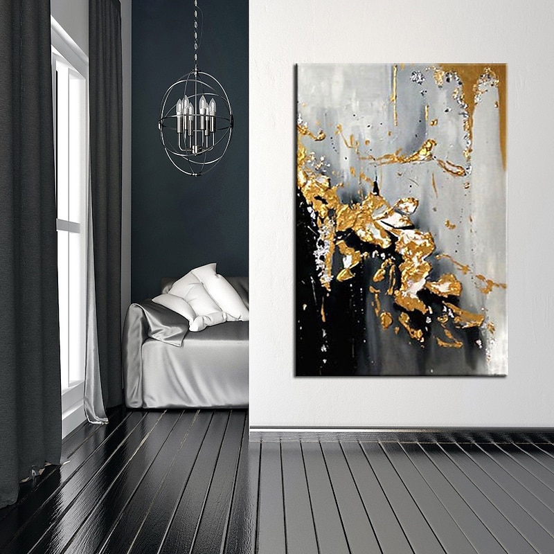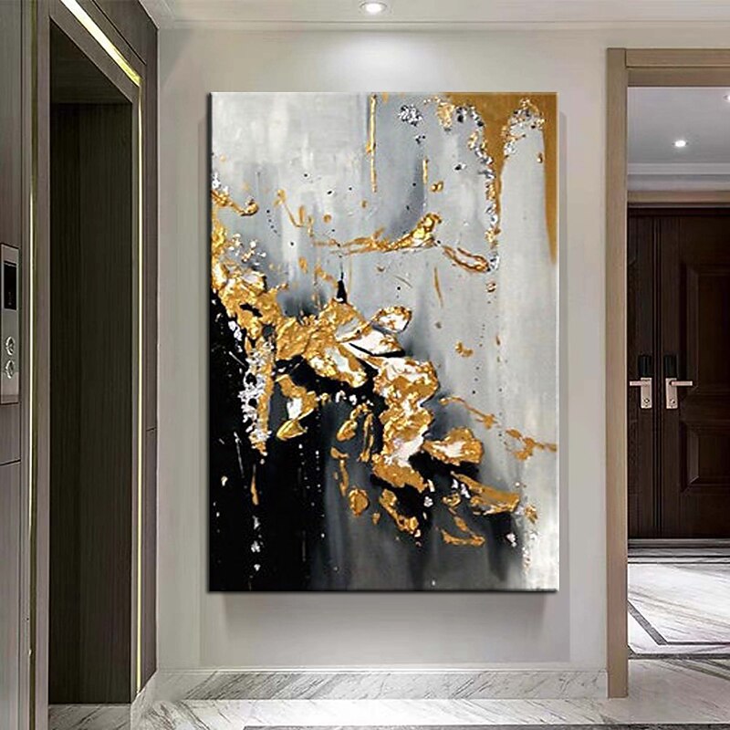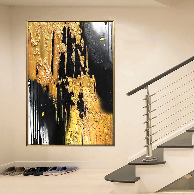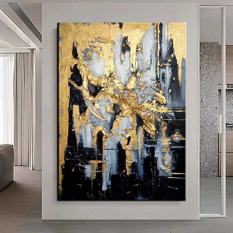 Large Hand Painted Golden Oil Painting foil Oil Painting Handmade Original Oil Painting Abstract up-to-date On Canvas Golden Leaf Wall Handmade Art Decor Rolled Canvas No Frame Unstretched