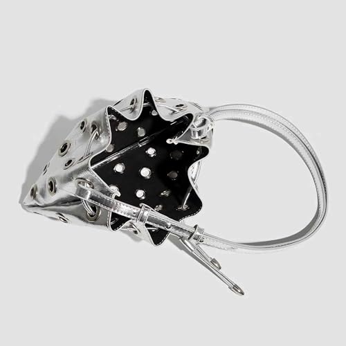 silver y2k purse for women, cool sparkly bucket purse, cute aesthetic fashion bag, small silver clutch bag 2