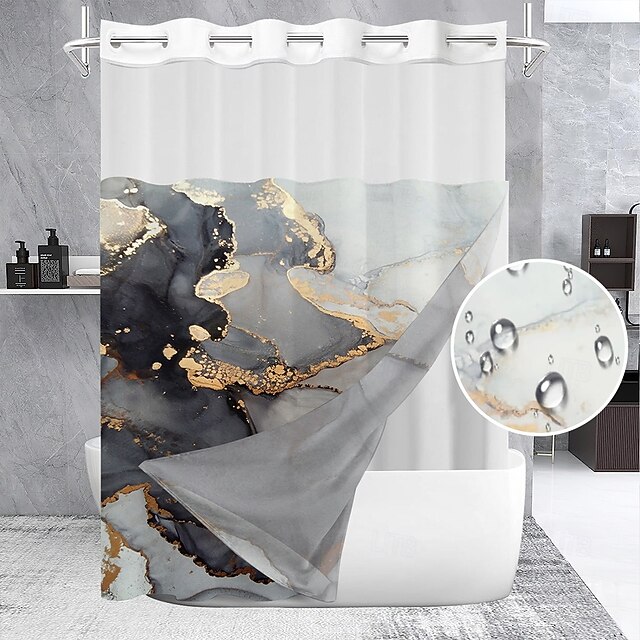 $43.99 - Marble Waffle-Weave Textured Shower Curtain Set with Snap-in Liner Sheer Window Water-Repellent Polyester, Grommet Top, 120GSM Hotel Quality Spa Style Bathroom Partition No Hooks Required 2025. Shop for cheap Shower Curtains online? Buy at lightinthebox.com on sale today!