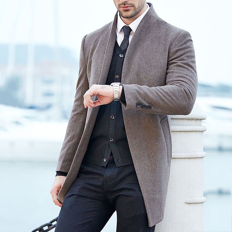 More information about Men's Winter Coat Wool Coat Overcoat Trench Coat Outdoor Daily Wear Fall & Winter Polyester Windbreaker Outerwear Clothing Apparel Fashion Streetwear Plain Queen Anne Single Breasted One-button