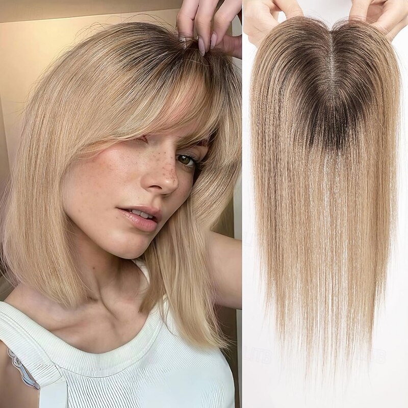 $171.99 - Toppers for WomenTop Hairpieces 100% Real Human Hair with bangs Human Hair Toppers with 3 Clips Swiss Lace Base Hand-Tied Hair lossing/Thinning Gray hair 12inch Ombre Light Blonde 2025. Shop for cheap Human Hair Pieces & Toupees online? Buy at lightinthebox.com on sale today!
