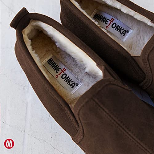 Fabric type: 100% Cow SuedeOrigin: ImportedSole material: RubberClosure type: Pull-OnTIMELESS STYLE: Designed with the vintage moccasin silhouette, these men's Minnetonka slippers are made with the finest materials that provide comfort, durability, and timeless style with every stepCOZY SHOE FIT: The men's suede slippers are made to stretch to the contours of your feet and wear pattern over time, ensuring that each pair of furry slippers fit snugly and getting more comfortable as you wear themCONVENIENT SIZING: Each pair of furry slippers for men runs true to size; Refer to the convenient Size Chart icon to ensure correct sizing before purchasing; if your feet are different sizes, make sure to measure the larger one for the best fitMORE THAN JUST REGULAR FOOTWEAR: These women's suede slippers are specially constructed with a soft suede leather and elastic-gore panels, lush pile lining, and Sierra indoor-outdoor soles for comfort, support, and tractionVERSATILE STYLE: Handmade for all-around comfort, these handsome slippers are easy off, easy on; These men's fluffy suede slippers adds a dash of style that matches with any outfit, whether you're relaxing indoors or going about your day outdoors Perfect for everyday use. superior materials and excellent craftsmanship ensure long-lasting durability.