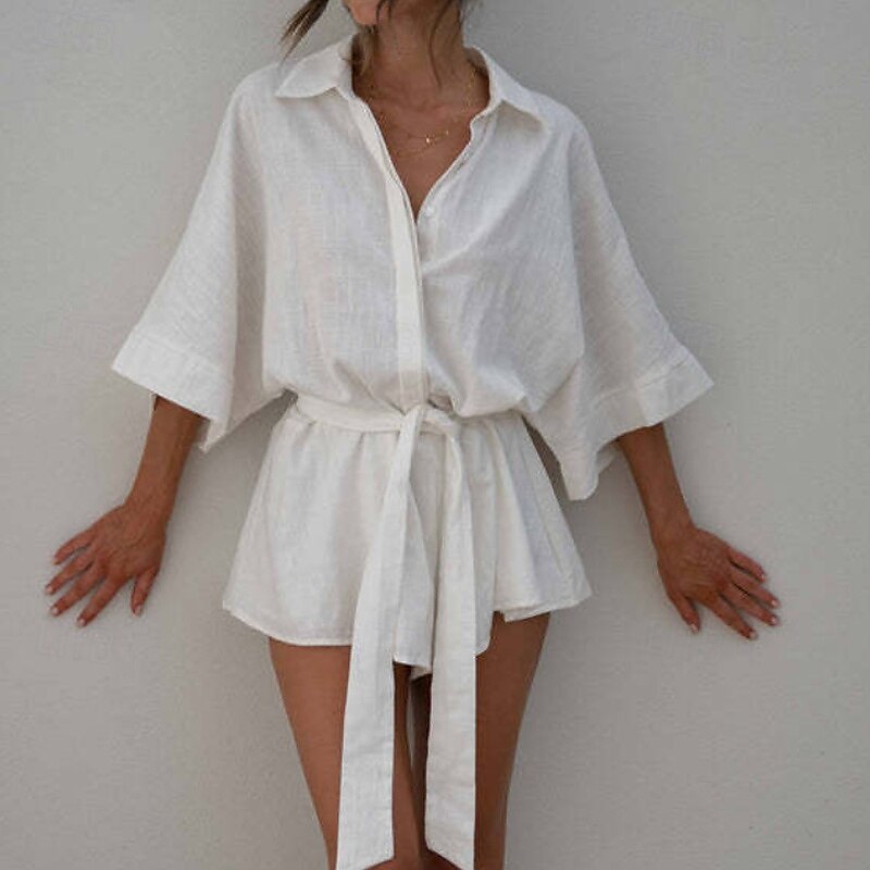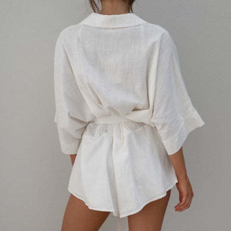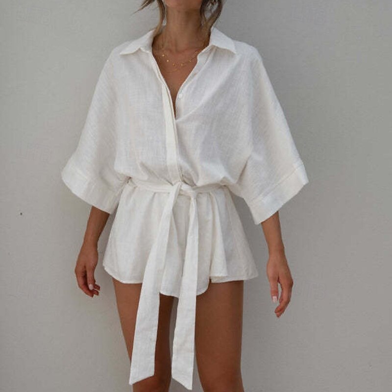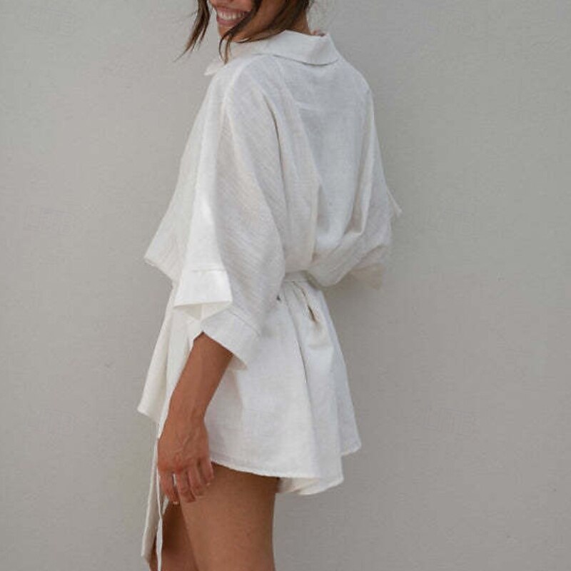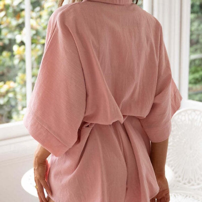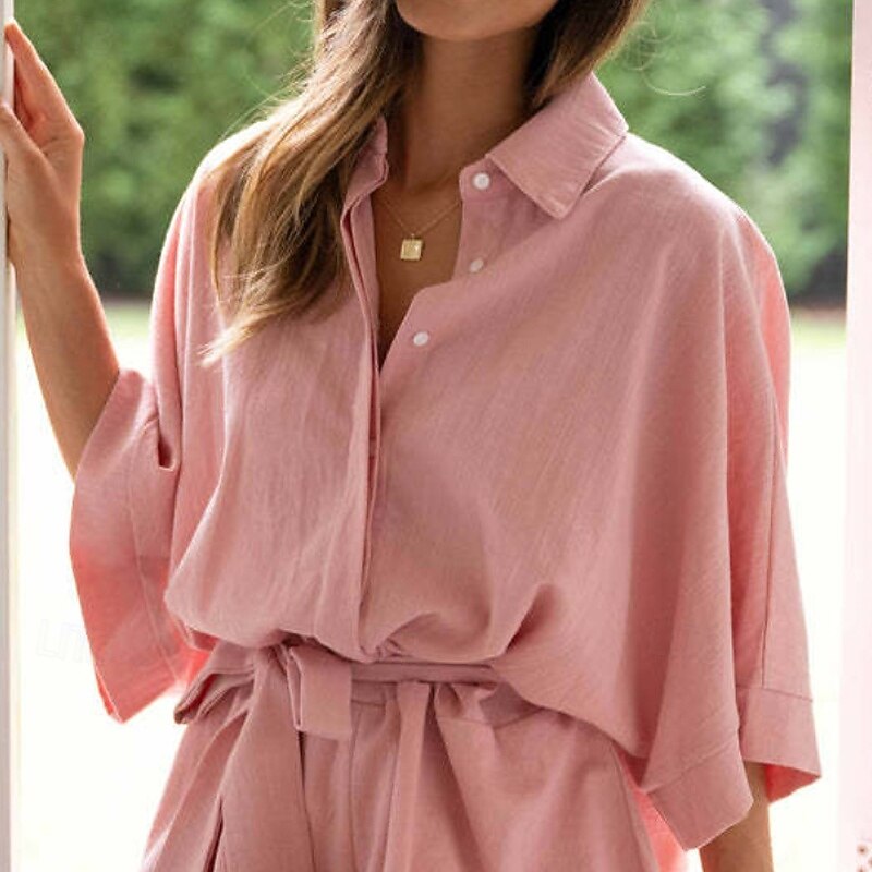 More information about Women's Normal Linen-Inspired Sets Streetwear Solid Color Half Sleeve Shirt Collar Buttons Going out Weekend Regular Fit White Pink Summer
