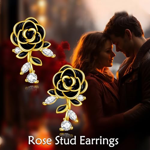 • 🌹【Rose Studs Material】The black rose stud earrings are made of S925 sterling silver, which is suitable for most people to wear, while the enameling process is used to make the flowers look more vivid and charming.