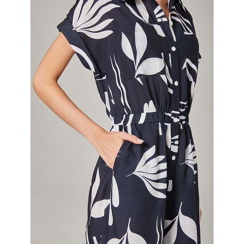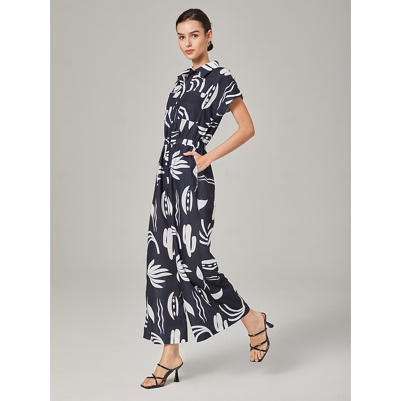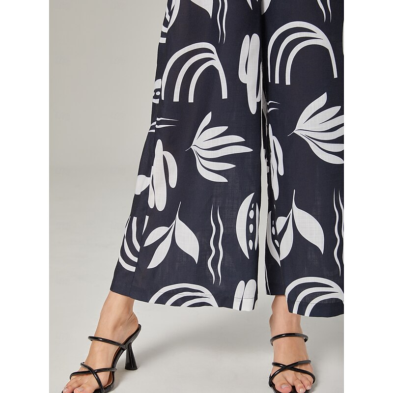 More information about Vacation Black and White Printed Linen-Like Jumpsuit
